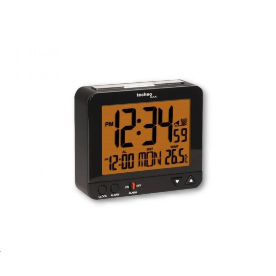 Digitální budík se speciální funkcí nočního osvětlení displeje při napájení pouze bateriemi. Noční osvětlení se zapne automaticky v závislosti na okolním světle.