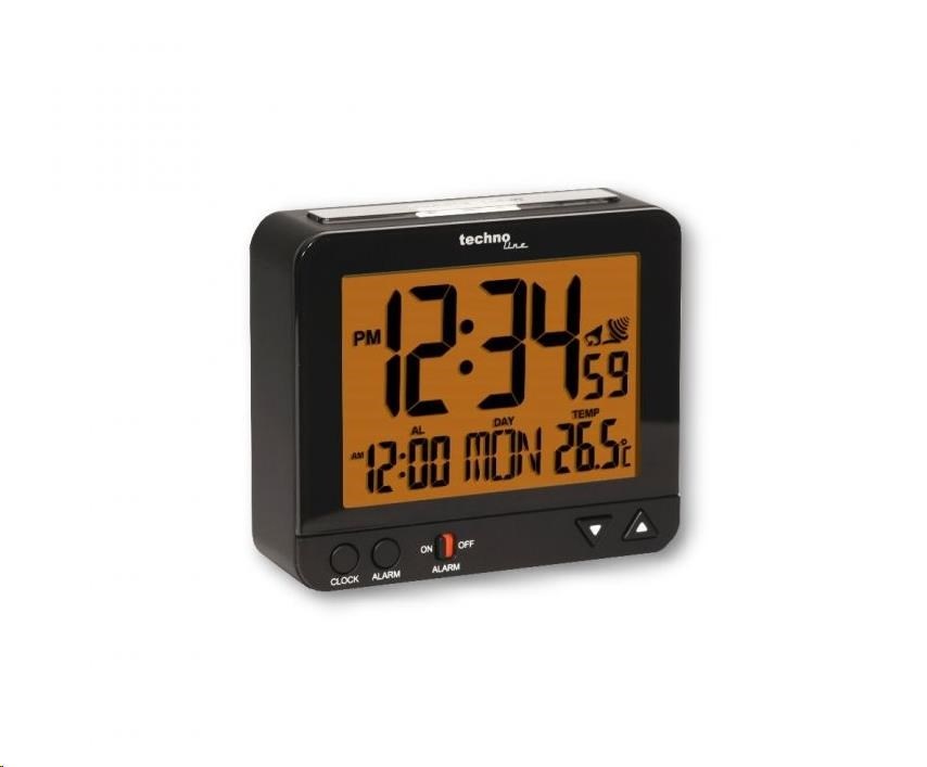 Digitální budík se speciální funkcí nočního osvětlení displeje při napájení pouze bateriemi. Noční osvětlení se zapne automaticky v závislosti na okolním světle.