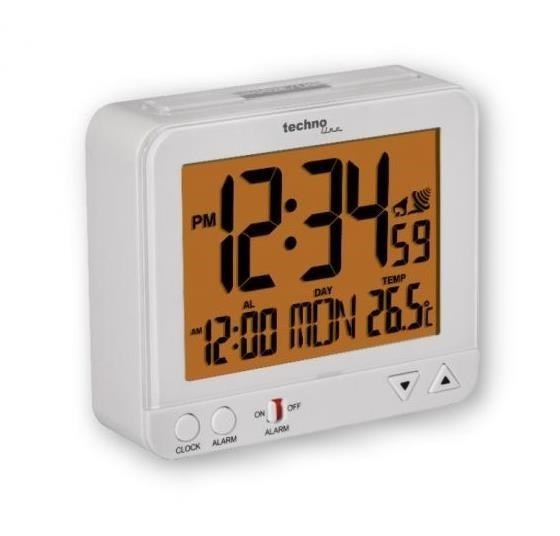 Digitální budík se speciální funkcí nočního osvětlení displeje při napájení pouze bateriemi. Noční osvětlení se zapne automaticky v závislosti na okolním světle.