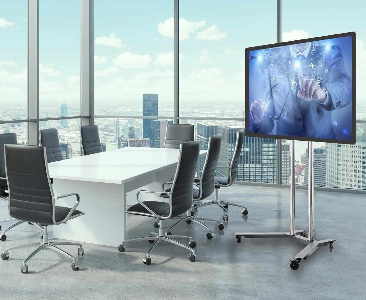 Televizní stojan EDBAK TR1-PWB Mobilní stojan na Tv 43" až 75", nastavení výšky 30-175cm, naklápění +6°/-9°, VESA 100x100 až 600x400, vedení kabeláže, nosnost 80kg Tento profesionální velmi kvalitní televizní stojan je vhodný především na prezentaci pomocí televize nebo monitoru o úhlopříčce 43" až 75". Nastavení Tv stojanu je propracováno do posledního detailu: nastavitelná výška obrazovky, nastavitelný náklon obrazovky, korekce roviny obrazovky (výborné v případě nerovnosti podlahy), systém skrytého vedení kabeláže, pojezdová kolečka s aretací. Stojan je velmi stabilní a bezpečný. V případě potřeby je možné dokoupit police na příslušenství, horní polici na kameru, podstavce místo koleček. Ideální pro videokonference a prezentace pomocí obrazové techniky. Televizní stojan EDBAK TR1-PWB Technické údaje: maximální zatížení 80kg na Tv a monitory 43" až 75" VESA standard 100x100 až 600x400 výška stojanu 180cm nastavitelná výška TV dle potřeby po celé výšce stojanu možnost náklonu TV +6° / -9° rozměry podstavy 1127x694mm (ŠxH) systém skrytého vedení kabeláže pojezdová kolečka s brzdou skvělá stabilita a bezpečnost možnost zakoupení police na příslušenství, police na kameru, přihrádky na katalogy, pevné podstavy profesionální výrobek - nejvyšší kvalita záruka 5 let Stojan na televize a monitory ideální na videokonference a prezentace Edbak TR1-PWB Televizní stojan Edbak TR1-PWB podporuje VESA standardy: VESA 100x100 VESA 200x100 VESA 200x200 VESA 300x200 VESA 300x300 VESA 400x200 VESA 400x300 VESA 400x400 VESA 600x400 maximální rozteč VESA pro uchycení Tv 600x460 Na televizní stojan EDBAK TR1-PWB je možné zavěsit všechny typy, značky a velikosti televizorů, které mají hmotnost do 80kg a které podporují kterýkoliv z výše uvedených VESA standardů. Velikost úhlopříčky televize nebo monitoru není podstatná a nehraje žádnou roli. Skleněná polička na příslušenství ke stojanu Edbak TRS2Horní polička na kameru nebo projektor 250x200mm Edbak CH5 Možnost dokoupení příslušenství: polička na příslušenství (až 3ks na stojan) horní polička na kameru pevné podstavce - výměna za pojezdová kolečka.