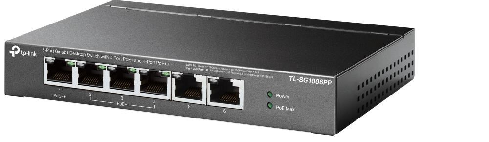 TP-Link CCTV switch TL-SG1006PP (6xGbE, 3xPoE+,1xPoE++, 64W, fanless)