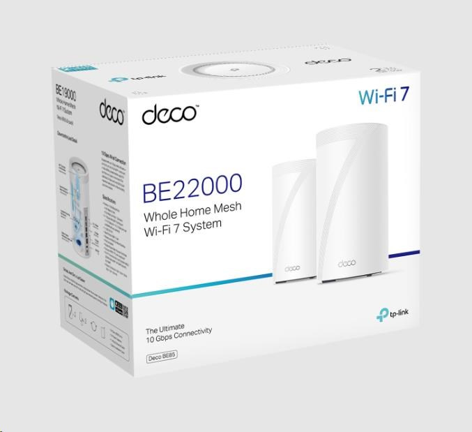 TP-Link Deco BE85(2-pack) WiFi7 Mesh(BE22000,2,4GHz/5GHz/6GHz,1x10GbELAN/WAN,1xSFP+/10GbELANcombo,2x2,5GbELAN/WAN,1xUSB)