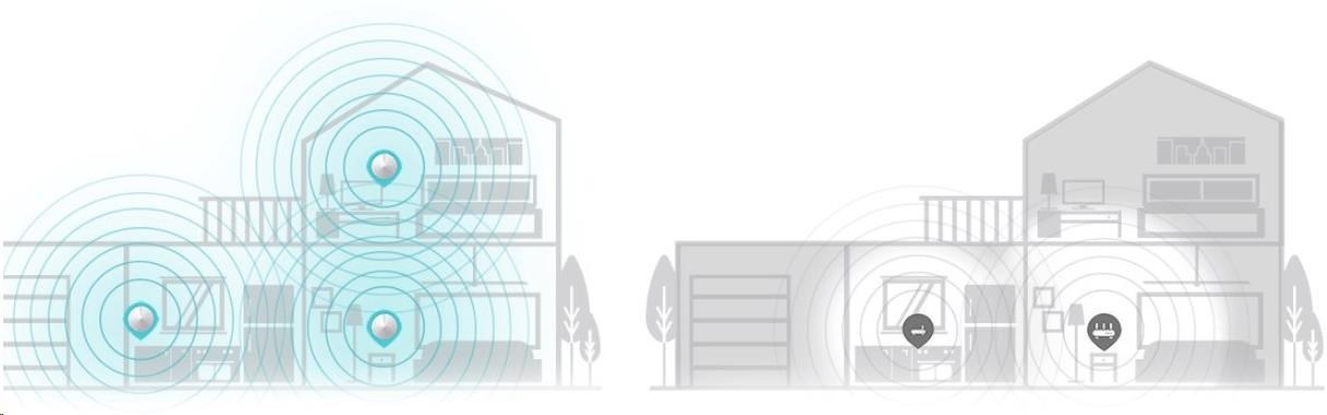 - Deco využívá systém více jednotek současně, které zajistí bezproblémové pokrytí signálem Wi-Fi a přecházení mezi jeho jednotlivými částmi v rámci celého domu – zbavte se míst se slabým signálem jednou provždy!