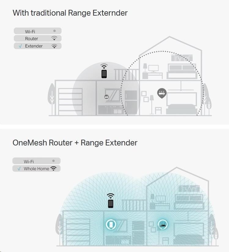 - Podporuje technologii OneMesh pro bezproblémové pokrytí celého domova