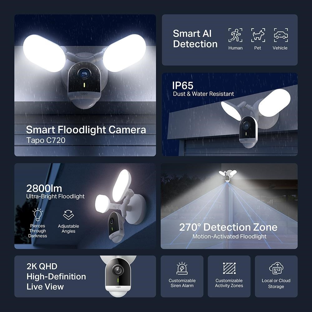 TP-Link Tapo C720 venkovní kamera s reflektory (4MP, 2K QHD, 1440p, IR 30m, WiFi, microSDcard, IP65)