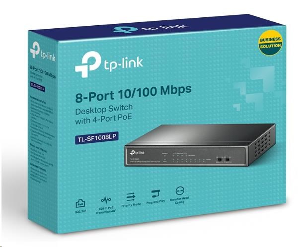 TP-Link switch TL-SF1008LP (8x100Mb/s, 4xPoE, 41W, fanless)