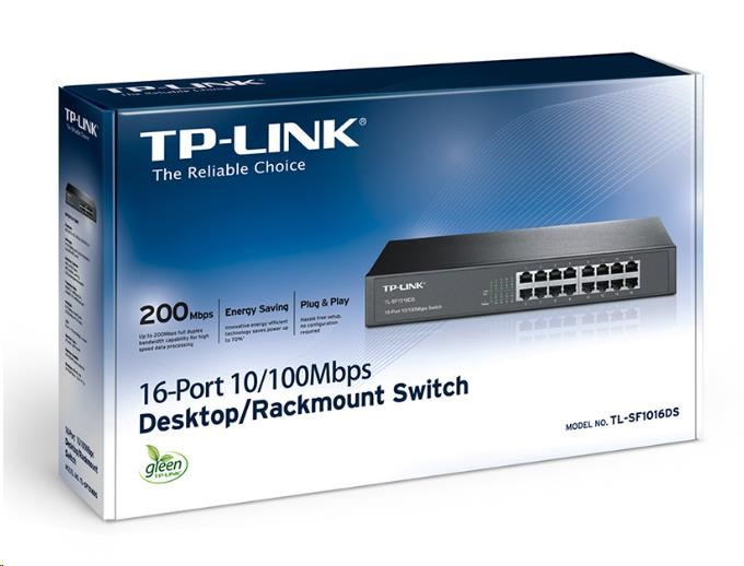 Switch TL-SF1016DS Fast Ethernet představuje výkonnou, cenově dostupnou, snadno použitelnou, bezproblémovou a standardní možnost upgradování staré sítě na síť s rychlostí 1 000 Mbit/s. Všech 16 portů podporuje funkci Auto MDI/MDIX, díky které se nemusíte starat o příslušný typ kabelu – stačí zapojit a používat. Navíc s inovativní technologií úspory energie dokáže zařízení TL-SF1016DS snížit spotřebu energie až o 25 %; 80 % obalového materiálu lze recyklovat. To vše z tohoto zařízení činí ekologické řešení pro vaši firemní síť.