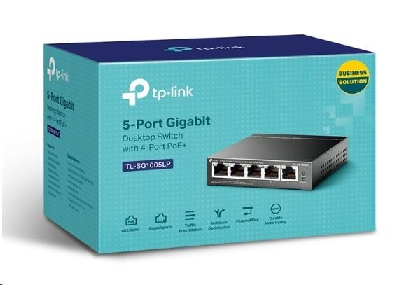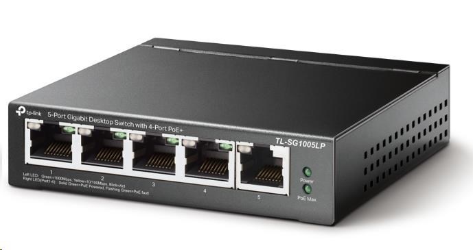 TP-Link switch TL-SG1005LP (5xGbE, 4xPoE+, 40W, fanless)