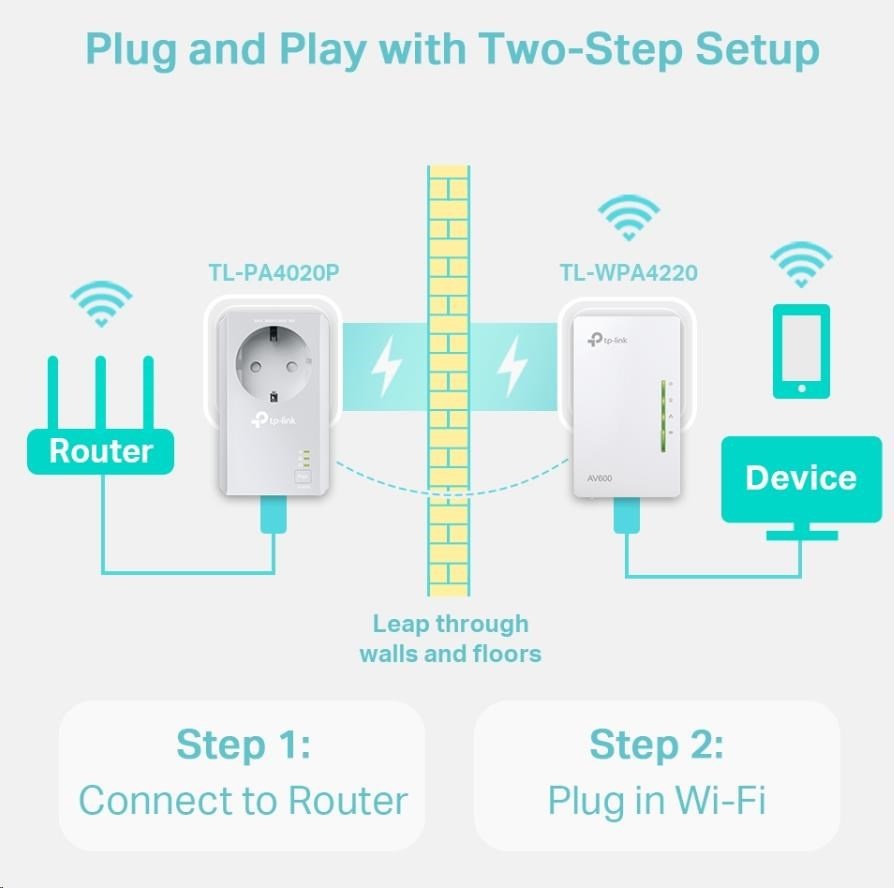 Package Contents | AV600 Powerline Wi-Fi Kit 1 × TL-WPA4220 (Wi-Fi Extender) 1 × TL-PA4020P 2 × Ethernet Cables 1 × Quick Installation Guide |