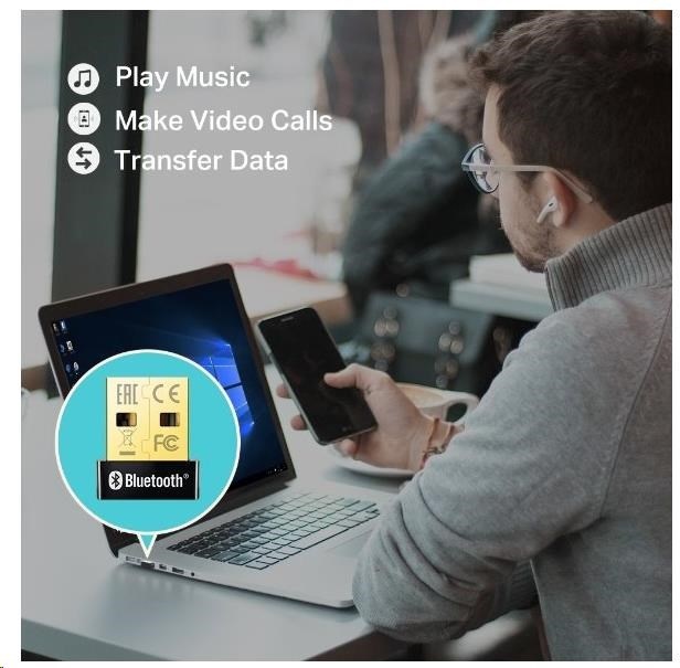 UB400 promění počítač nebo laptop bez Bluetooth na Bluetooth. Stačí připojit vaše Bluetooth zařízení k vašemu počítači a užívat si to s lehkostí. Podporuje maximálně 7 zařízení Bluetooth.