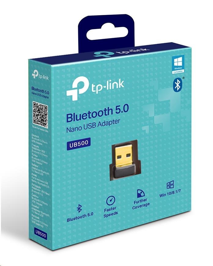 - UB500 vybaví váš počítač pokročilou technologií Bluetooth 5.0, která přináší mnohá vylepšení oproti starší verzi. Podporuje vyšší rychlosti připojení a má delší dosah než technologie Bluetooth 4.0, takže mezi počítačem a Bluetooth zařízeními je navázáno silnější a spolehlivější bezdrátové připojení. K dalším výhodám patří i nižší spotřeba energie a větší dosah vysílání.