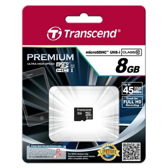 TRANSCEND MicroSDHC karta 8GB Premium, Class 10 UHS-I 300x, bez adaptéru