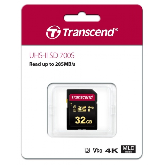 Transcend's SDXC/SDHC 700S memory cards meet both the UHS-II Speed Class 3 (U3) and the UHS Video Speed Class 90 (V90) standards for 4K Ultra HD video recordings, with read/write speeds of up to 285MB/s and 180MB/s respectively.