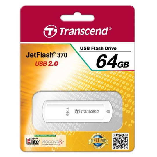 TRANSCEND Flash Disk 64GB JetFlash®370, USB 2.0 (R:16/W:6 MB/s) bílá
