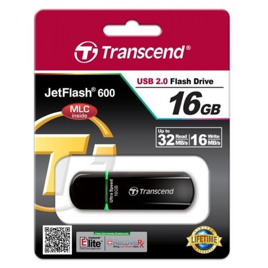 TRANSCEND Flash Disk 16GB JetFlash®600, USB 2.0 (R:32/W:16 MB/s) černá/zelená