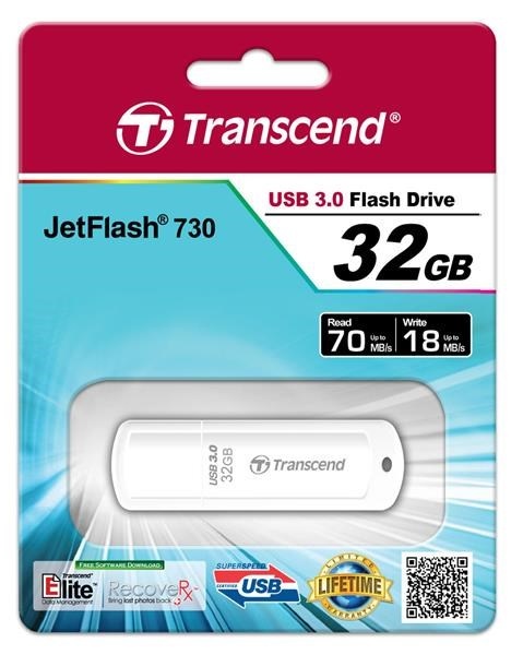 TRANSCEND Flash Disk 32GB JetFlash®730, USB 3.0 (R:70/W:18 MB/s) bílý