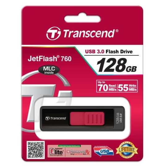 TRANSCEND Flash Disk 128GB JetFlash®760, USB 3.0 (R:85/W:34 MB/s) černá/červená