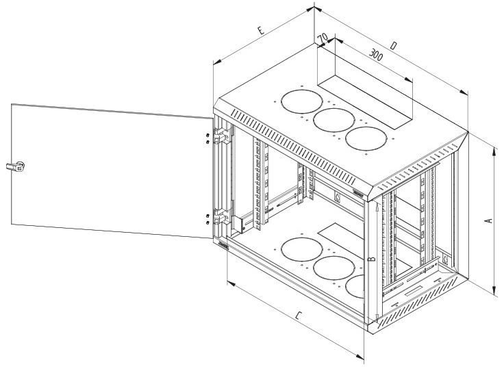 Jednodílný svařovaný rozvaděč s odnímatelnými bočnicemi. IP30, nosnost 30 kg.