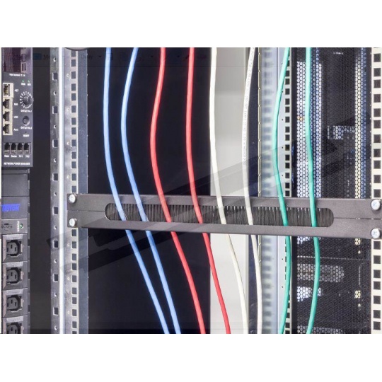 TRITON 19" průchozí panel 1U rozdělený horizontálně, kartáč, otvor 350 x 21 mm, černý