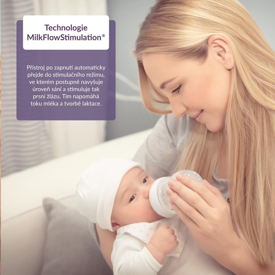 Odsávačka podporuje laktaci a napodobuje přirozený průběh kojení.