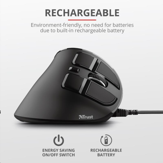 TRUST ergonomická Myš Voxx Rechargeable Ergonomic Wireless Mouse