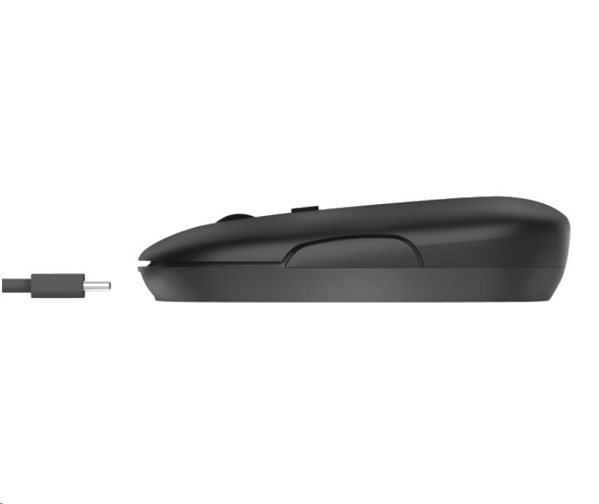 Rechargeable wireless mouse with minimalistic, rounded shape and silent buttons