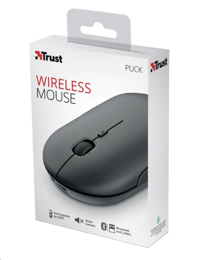 TRUST myš PUCK, bezdrátová, USB, černá