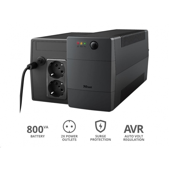 TRUST UPS Paxxon 800VA UPS with 2 standard wall power outlets