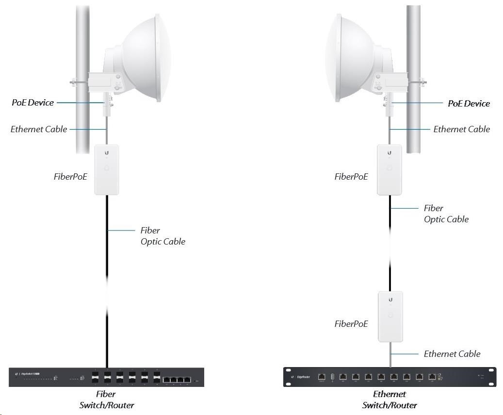 UBNT FiberPOE G2 je cenově dostupný, gigabitový, opticko-metalický, venkovní konvertor, jenž kromě převodu dat z optického vlákna na metalický kabel umí také napájení pomocí PoE. Oproti první generaci zvládne odolat větší většímu rozsahu teplot (-40 až 60°C).