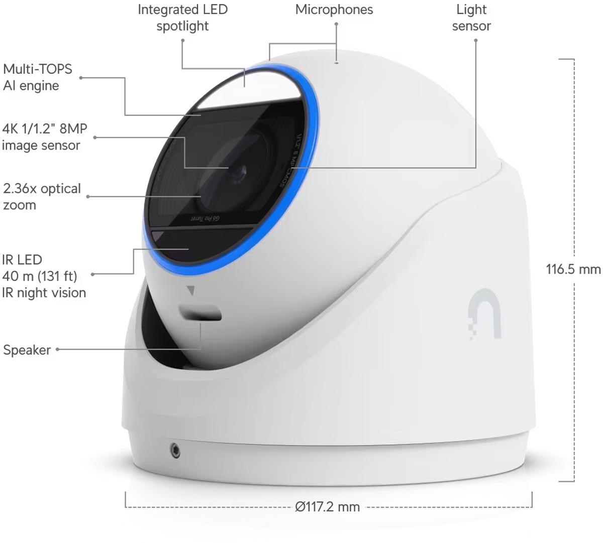 UBNT G6 Pro Turret, UniFi 8MP IP kamera, bílá
