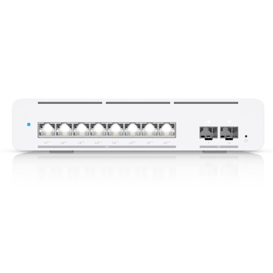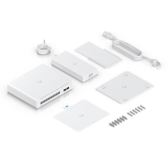 Technické parametry Konektory a rozhraní Rychlost LAN:(8) 100M/1G/2.5G/5G/10Gbps Optické rozhraní:(2) 1G/10Gbps Napájení Typ napájení:DC konektor Podporované PoE-Out standardy:802.3bt Počet PoE Out portů:8 PoE budget [W]:155 Max. spotřeba energie [W]:60 Napájení přes konektor/svorkovnici:54V DC Fyzické charakteristiky Provedení:Desktop Ventilátory:Ne Šasi:Kovové Provozní teplota [°C]:-5 až 45 Šířka [mm]:210 Výška [mm]:44 Hloubka [mm]:174 Obecné Rychlost přepínání [Gbps]:200 Tabulka MAC adres:32000 Rychlost předávání paketů [Mpps]:149 Software Management:UniFi Network Funkce:VLAN, DHCP snooping, L2, L3 Výchozí IP adresa:192.168.1.20, Dynamická z DHCP Výchozí jméno a heslo:ubnt / ubnt.