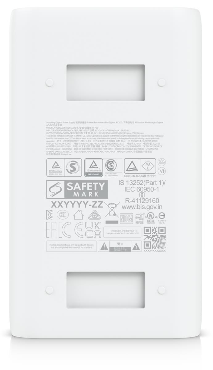 Popis produktu U-POE+ od Ubiquiti je kvalitní Gigabitový PoE injektor s jedním výstupním POE portem pro napájení zařízení pasivním napětím 48V s maximálním výstupním výkonem 30W, což je dostatečné i pro nejnovější zařízení jako jsou U6 Access Pointy (U6-LR, U6-Lite, U6-Pro) . Napájení je vedeno po vodičích 4,5 (+) a 7,8 (-). Samozřejmostí zdroje je i ochrana před elektrickým přepětím. 3-pinový napájecí kabel je součástí balení. Technické parametry Konektory a rozhraní Rychlost ethernetu [Mb/s]:10/100/1000 Gigabit LAN:Ano Napájení Vstupní napětí [V]:230V AC Výstupní výkon [W]:30 Výstupní výkon - 1port [W]:30 Napájení na pinech:4,5 (+), 7,8 (-) Podporované PoE-Out standardy:Pasivní 48V Počet PoE Out portů:1 Výstupní napětí [V]:48 Výstupní proud [A]:0,65 Fyzické charakteristiky Stínění:Ano LED indikace:Ano Provozní teplota [°C]:0 až 40 Hmotnost [g]:156 Šířka [mm]:62 Výška [mm]:35 Hloubka [mm]:93.