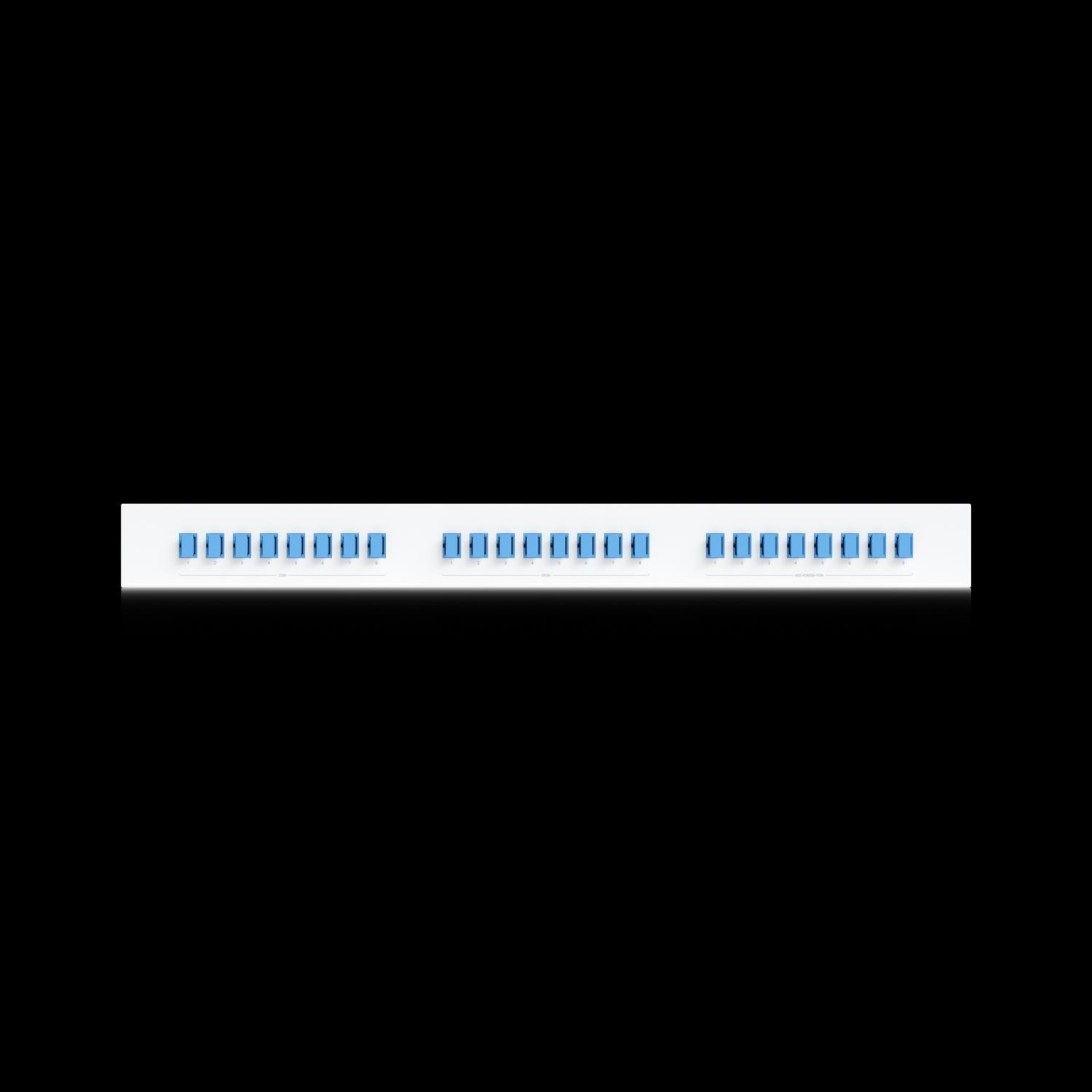 Description & Key Features UISP Fiber Coexistence WDM Filter 8 sets are integrated, professional rack-mount Technical Specifications Mechanical Dimensions 442 x 120 x 43.7 mm ( 17.4 x 4.7 x 1.7") Weight 1.8 kg (3.97 lb) Enclosure material Metal Connector type (8) COM (SC/UPC) (8) GPON (SC/UPC) (8) XGS/XG-PON (SC/UPC) Hardware GPON - COM port Wavelength range 1290—1330 nm 1480—1500 nm Max. insertion loss 1 dB Min. isolation 25 dB XGS-PON - COM port Wavelength range 1260—1280 nm 1575—1580 nm Max. insertion loss 1 dB Min. isolation 25 dB Min. return loss 50 dB Max. polarization dependentloss 0.1 dB Fiber type ITU-T G.657.A1 Single Model Fiber.