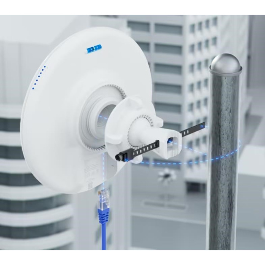 5 GHz wireless bridge with PoE output that connects at 5+ km distances or seamlessly uplinks to UniFi WiFi. Link at 5+ km distances with a point-to-point connection to another Device Bridge Pro, or uplink seamlessly with UniFi WiFi Auto-Link (2) GbE ports with (1) PoE output for PoE devices Powered using PoE/PoE+* Pole mounting Weatherproof (outdoor exposed) Sold as a single unit Note. Cannot be set up standalone and must be managed by a UniFi Console, Official UniFi Hosting, or a Self-Hosted UniFi Network Server. *PoE adapter included. PoE+ input required for PoE passthrough..