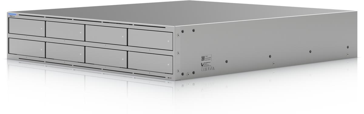 Popis produktu Síťové úložiště UniFi velikosti 2U pro montáž do racku s (8) pozicemi pro 2,5/3,5" pevné disky, (2) sloty pro M.2 NVMe SSD cache, (1) 10 GbE RJ-45 portem a (2) 10G SFP+ porty pro uplink. Poháněn je čtyřjádrovým procesorem ARM Cortex-A57, který je doplněný o 16 GB operační paměti. Disponuje dvěmi redundantními napájecími moduly s možností výměny za provozu. Obsah balení • Zařízení • Napájecí kabel a zdroj • Příslušenství pro montáž do racku Technické parametry Konektory a rozhraní Počet slotů pro HDD:8 Počet M.2 slotů:2 Rychlost LAN:(1) 100M/1G/2.5G/5G/10G Gigabit LAN:Ano Optické rozhraní:(2) 10Gbps Ostatní:Bluetooth Napájení Typ napájení:Ze sítě (230V) Redundantní napájení:Ano Max. spotřeba energie [W]:250 Napájení přes konektor/svorkovnici:230V AC Fyzické charakteristiky Provedení:Rackmount Materiál:Ocel Počet "U" pozic:2 LED indikace:Ano Provozní teplota [°C]:-5 až 40 Hmotnost [kg]:11,5 Šířka [mm]:442 Výška [mm]:87 Hloubka [mm]:480 Hardware Velikost operační paměti [GB]:16 CPU:ARM Cortex-A57.