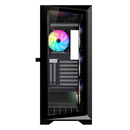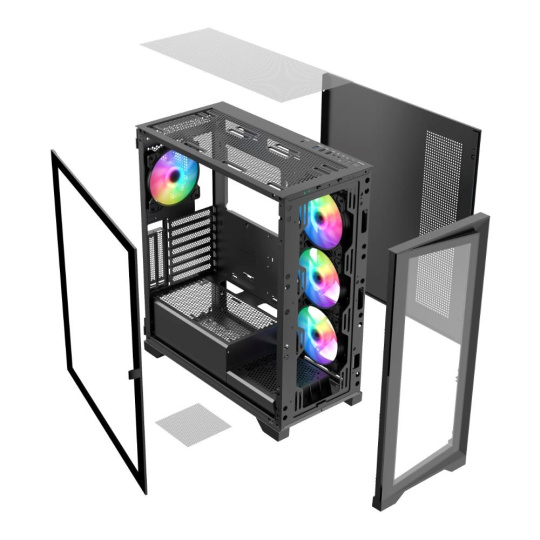 - Skříň ATX z tvrzeného skla s 360° panoramatickým výhledem