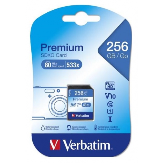 VERBATIM SDXC karta 256GB Class 10, UHS-1 (R:80/W:10 MB/s)