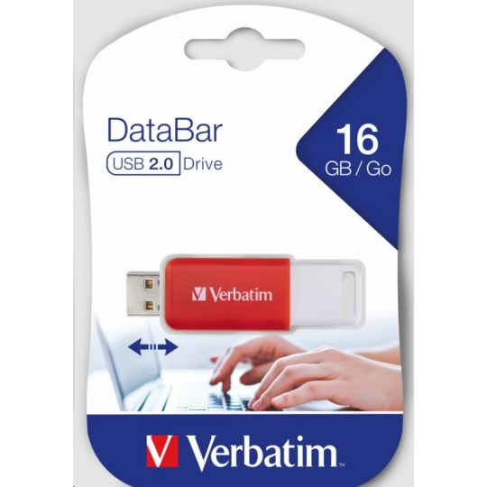 VERBATIM Flash Disk 16GB DataBar USB 2.0 Drive, červená