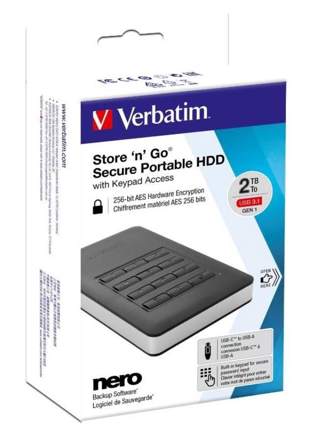 VERBATIM Externí HDD 2TB Incl.KEYPAD USB3.1 USB 3.0 GDPR
