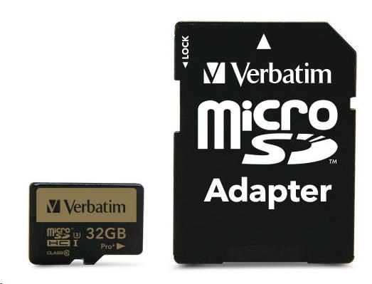 VERBATIM MicroSDHC karta 32GB PRO+ Class 10, UHS 1 (R:90/W:80 MB/s)