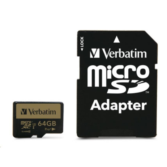 VERBATIM MicroSDXC karta 64GB PRO+ Class 10, UHS 1 (R:90/W:80 MB/s)
