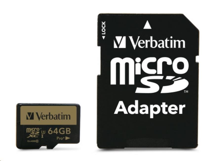 VERBATIM MicroSDXC karta 64GB PRO+ Class 10, UHS 1 (R:90/W:80 MB/s)