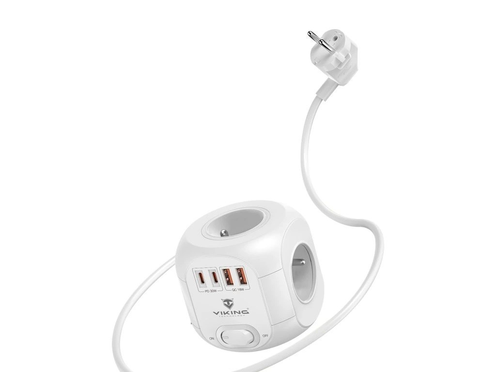 Viking AC CUBE PD30 je praktickým řešením pro každé prostředí – ať už v kanceláři, kde pomůže udržet pořádek na pracovním stole, v obývacím pokoji pro organizované a pohodlné napájení, v dětském pokoji pro bezpečné nabíjení elektroniky, nebo v kuchyni pro snadné připojení vašich spotřebičů.