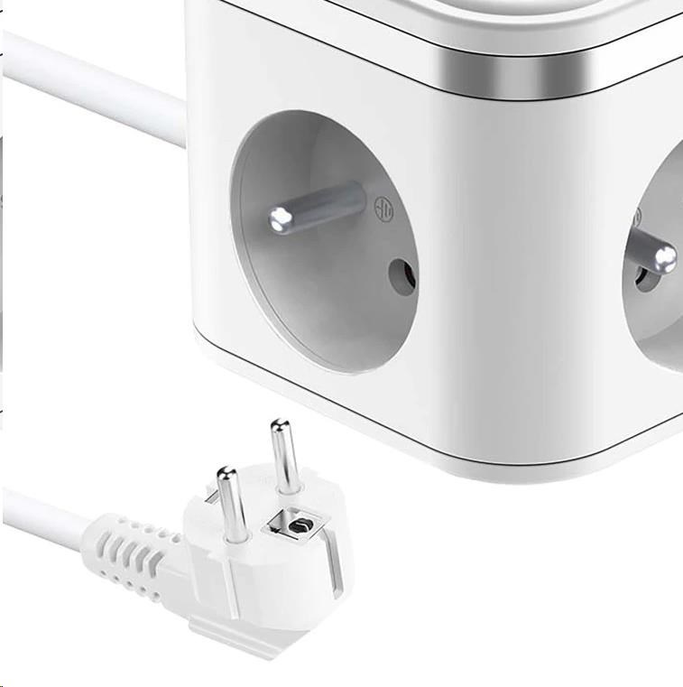 Viking síťový adaptér YC33, 3x 230 V, 1x USB-A, 2x USB-C, tlačítko ON/OFF, délka 1,4 m, bílá