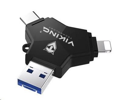 Viking USB Flash disk 3.0 4v1 s koncovkou Lightning/Micro USB/USB/USB-C, 128 GB, černá