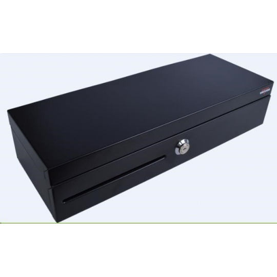 Virtuos pokladní zásuvka FT-460C1; Flip top, bez víka, 9-24V, černá - s kabelem