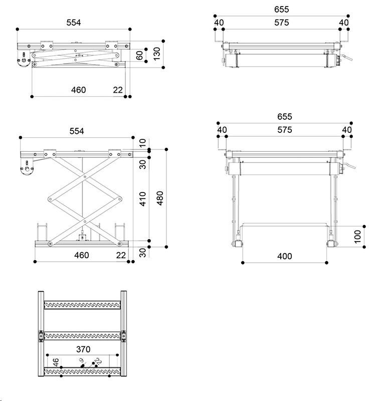 - Rozměry uzavřeného výtahu 575 x 130 x 554 mm (š x v x h)
