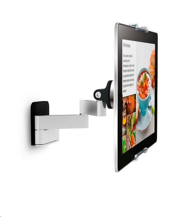 Tablet je velmi užitečným pomocníkem i v kuchyni nejen pro vytváření hudební kulisy, ale i jako pomocná ruka při přípravě vašich kulinářských kreací. Pro jeho maximální užití navrhli ve Vogel's pohyblivý držák poskytující spolehlivé a flexibilní uchycení na stěnu. Nezabírá místo na pracovní desce a drží tablet v bezpečné vzdálenosti od stříkanců.