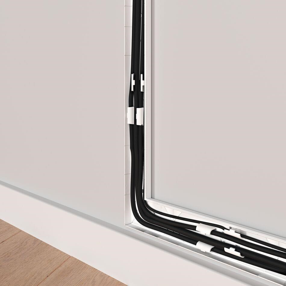 S kabelovou lištou TVA 6000 můžete bezpečně a úhledně skrýt čtyři kabely mimo dosah dětí a domácích zvířat. Design je stylový a velmi plochý s minimální vzdáleností od stěny pouhých 14 mm a délkou 80 cm. Je samozřejmě vhodný pro ukrytí různých typů kabelů, například HDMI, USB, AUX nebo napájecích kabelů.