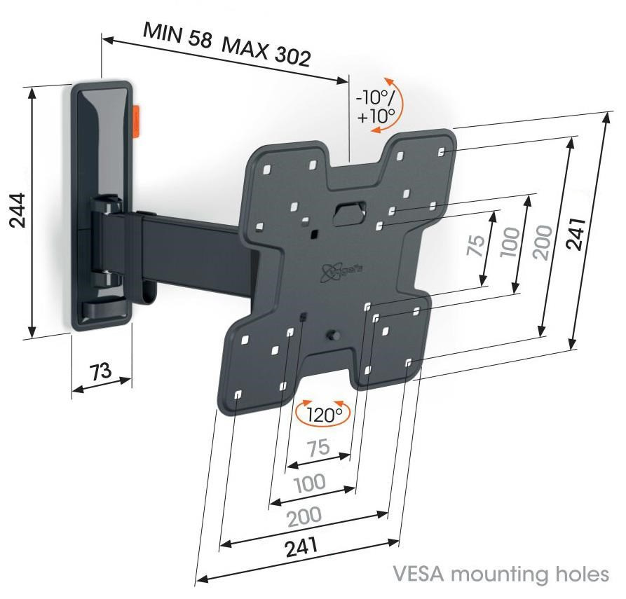 Bezpečnost, design a pohodlí při sledování TV jdou ruku v ruce s držákem TVM 3223. Držák je speciálně navržen pro intenzivní používání. Je velmi robustní a zaručuje optimální zážitek ze sledování TV. Můžete jej otáčet až o 120° (záleží na šířce TV) a naklápět o 20° (10° nahoru a dolů). TVM 3223 je vhodný pro televizory s úhlopříčkou od 19 do 43 palců a hmotností do 15 kg.